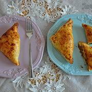 干鹰嘴豆、菠菜、千层酥皮、大蒜、洋葱、红甜椒、小米椒、芜荽粒、蛋液。