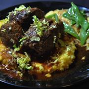 牛腩、百叶结、洋葱、蒜、胡萝卜、辣椒、红酒、牛肉高汤。