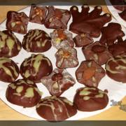 糖渍橙子、杏仁糖块、糖、盐、蛋白、杏仁碎、榛子碎、面粉、姜饼调料、茯苓饼皮、黑巧克力、白巧克力。