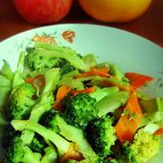 西兰花、胡萝卜、豆油、精盐、花椒粉、葱末、姜末。