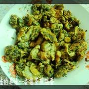 白菜叶、面粉、玉米粉、葱末、姜末、香菜、豆油、水、胡椒粉、盐。