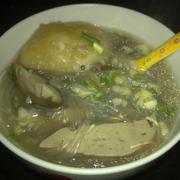 鸭血、粉丝、香菇、鸡肝、面筋、蒜泥、小葱、盐、白胡椒、色拉油。