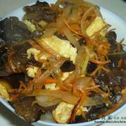木耳、洋葱、鸡蛋、胡萝卜、葱、姜、食用油、食盐、酱油。
