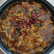 猪小里脊、生菜、金针菇、郫县豆瓣酱、葱、花椒、辣椒、盐、酱油、淀粉。