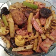 莴笋、藕、菜花、香菇、土豆、鸡翅、百叶、火腿、葱、姜、海底捞麻辣香锅底料。