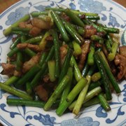 蒜苗、肉丝、油、盐、糖、料酒、鸡精。