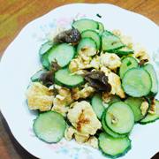 黄瓜、鸡蛋、黑木耳、油、盐、糖、葱花。