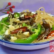 石花菜、黑木耳、青椒、干辣椒、蒜瓣、生抽、盐、糖。