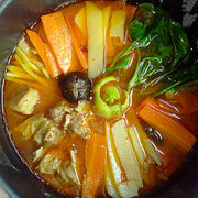 羊肉、胡萝卜、土豆、香菇、上海青、波菜、葱、姜、油、盐、鸡蛋、味精、麻辣火锅底料。