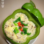 大甜椒、鸡蛋、香菇、香葱、花生油、盐。