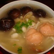 鲜金针菇、花蛤、鲜香菇、青笋、虾丸、姜、葱花。