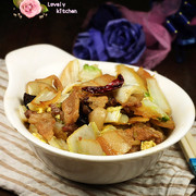 娃娃菜、五花肉、木耳水发、洋葱、葱姜蒜、酱油、料酒、辣椒、花椒、糖、盐。