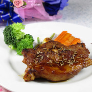 羊蝴蝶排、大蒜、西兰花、胡萝卜、大喜大烤肉酱、孜然粒、迷迭香碎、葡萄酒、橄榄油。