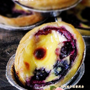 冷冻蛋挞皮、安佳淡奶油、牛奶、蛋黄、玉米淀粉、蓝莓、白糖。