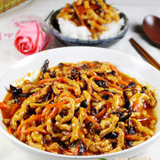 大豆拉丝蛋白丝、胡萝卜、水发木耳、葱、郫县辣椒、盐、糖、生抽、醋、姜、蒜。