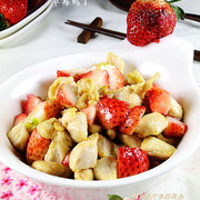 鸡胸肉、鲜草莓、盐、淀粉、姜丝、白胡椒粉。