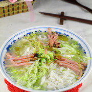面条、生菜、火腿、上汤、调味汁、麻油。