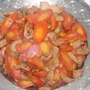 猪瘦肉、胡萝卜、料酒、生抽、盐、味精。