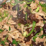 木耳、肉丝、青辣椒、姜、蒜、葱、料酒、生抽。