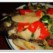 罗非鱼、泡罗卜、姜葱、红椒、油、盐、料酒、生抽、鸡精。