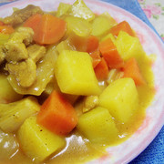猪肉、土豆、洋葱、胡萝卜、咖喱酱、油、盐。