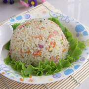 剩米饭、火腿肠、胡萝卜、鸡蛋、洋葱、生菜叶、油盐。