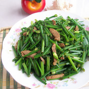 韭苔、猪肉、豆瓣酱、油盐、料酒、淀粉。