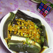 茄子、蒜、葱、黄彩椒、白糖、白醋、油盐、味极鲜酱油。
