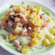 面条、南瓜、火腿、淡奶油、白糖、盐、油。