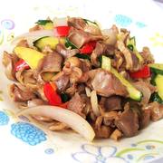 鸡胗、洋葱、彩椒、黄瓜、姜、淀粉、酱油、料酒、油盐、醋。