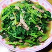 苔菜、猪肉、油、酱油、料酒、盐、蚝油。