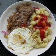 意大利面、洋葱、牛肉、盐、橄榄油。