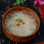 白萝卜、面粉、黄豆芽、鲜香菇、干贝、葱、姜、枸杞、香菜、香油、盐。