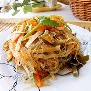 粉丝、干海带、豆腐皮、胡萝卜、葱、生抽、陈醋、盐、香油、香菜。
