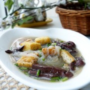 猪血、粉丝、肥五花肉、香葱、姜、油方。