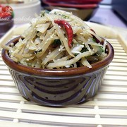 咸菜疙瘩、葱白、鲜辣椒、香菜、姜、白醋、生抽、胡椒粉、香油。
