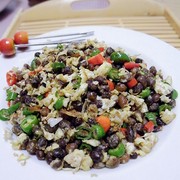 干臭豆子、青红辣椒、葱、鸡蛋、花生油。