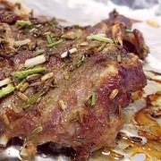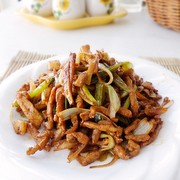 猪后腿肉 、葱、蒜瓣、生抽、老抽、蚝油、淀粉、料酒、盐、花生油。