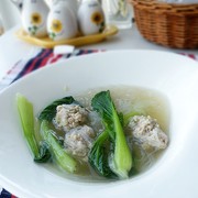 猪五花肉、粉丝、油菜、生抽、盐、胡椒粉、淀粉、香油。