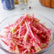 红心萝卜、白醋、白糖、盐、熟芝麻、香油。