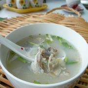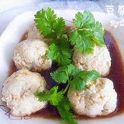 豆腐、猪腿肉、鸡蛋、大葱、姜、酱油、盐、料酒、胡椒粉、淀粉、香油、花生油。