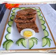 猪腿肉、长茄子、香菜、葱、花椒粉、生抽、鸡蛋、低粉、盐。