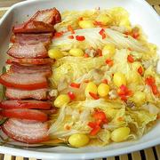 大白菜心、熟银杏、熟腊肉、红辣椒、生抽、盐、熟猪油。