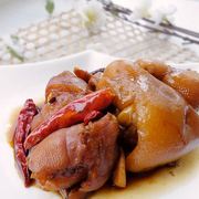 猪蹄、冰糖 、香叶、大茴 、花椒、干辣椒、葱、姜 、料酒、盐 、生抽、花生油。