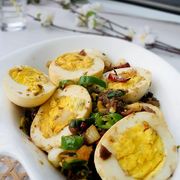 草鸡蛋、青尖椒、干红辣椒、大葱、蒜瓣、豆豉、生抽、盐、花生油。