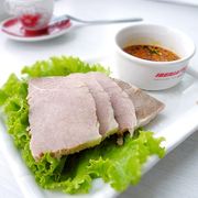 猪肘子、葱、姜、香叶、小茴香、花椒、大茴、生抽、老抽、料酒、蜂蜜、盐、香葱、红辣椒、熟芝麻、花生油。