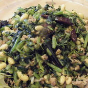 菜花、葱、姜、蒜、香菜、生抽、蚝油、蒸鱼豉汁、盐、淀粉、白糖。