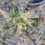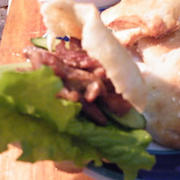 里脊肉、烤牌、生菜、黄瓜、鸡蛋、料酒、生抽、淀粉。