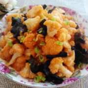 菜花、番茄酱、黑木耳、白糖、蒜、盐、油、蚝油。