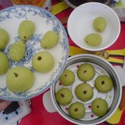 菠菜汁、自发面粉、红豆沙、牛奶。